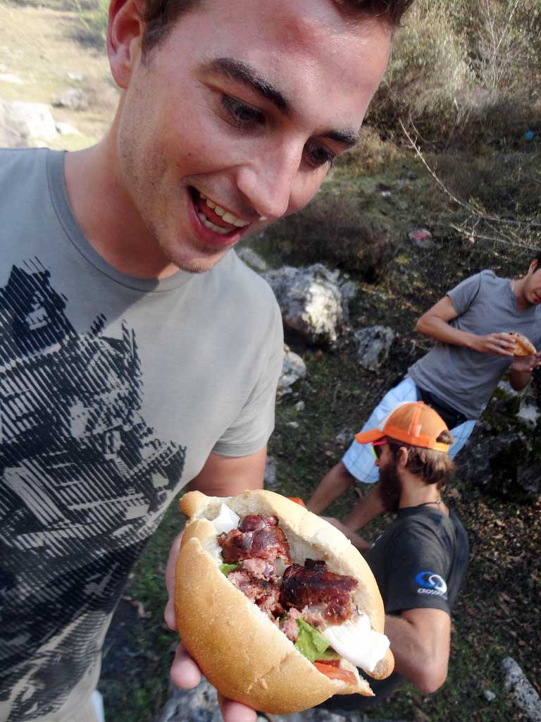 While working at a hostel in Chiapas, we organized an outing and BBQ in a nearby park; we grilled longaniza (Mexican sausage),and put them fresh bread with tomatos, avocado, Oaxaca cheese and buffalo sauce.